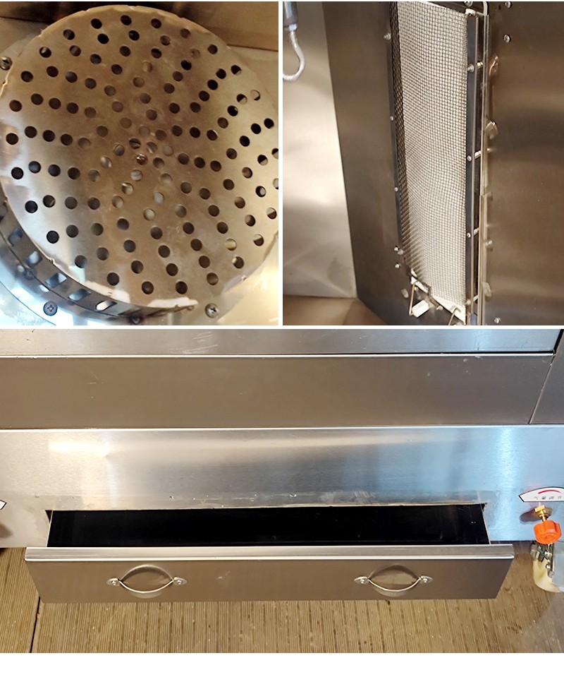3. The bottom has a discharge of oil hole, can be in the process of baked product oil recovery to the oil pan.